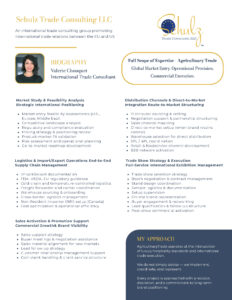 Valérie Chouquet is a global sourcing expert and international trade consultant specializing in premium and specialty gourmet food products. She advises food brands on international expansion strategies, with a strong focus on market entry between the United States and Europe.